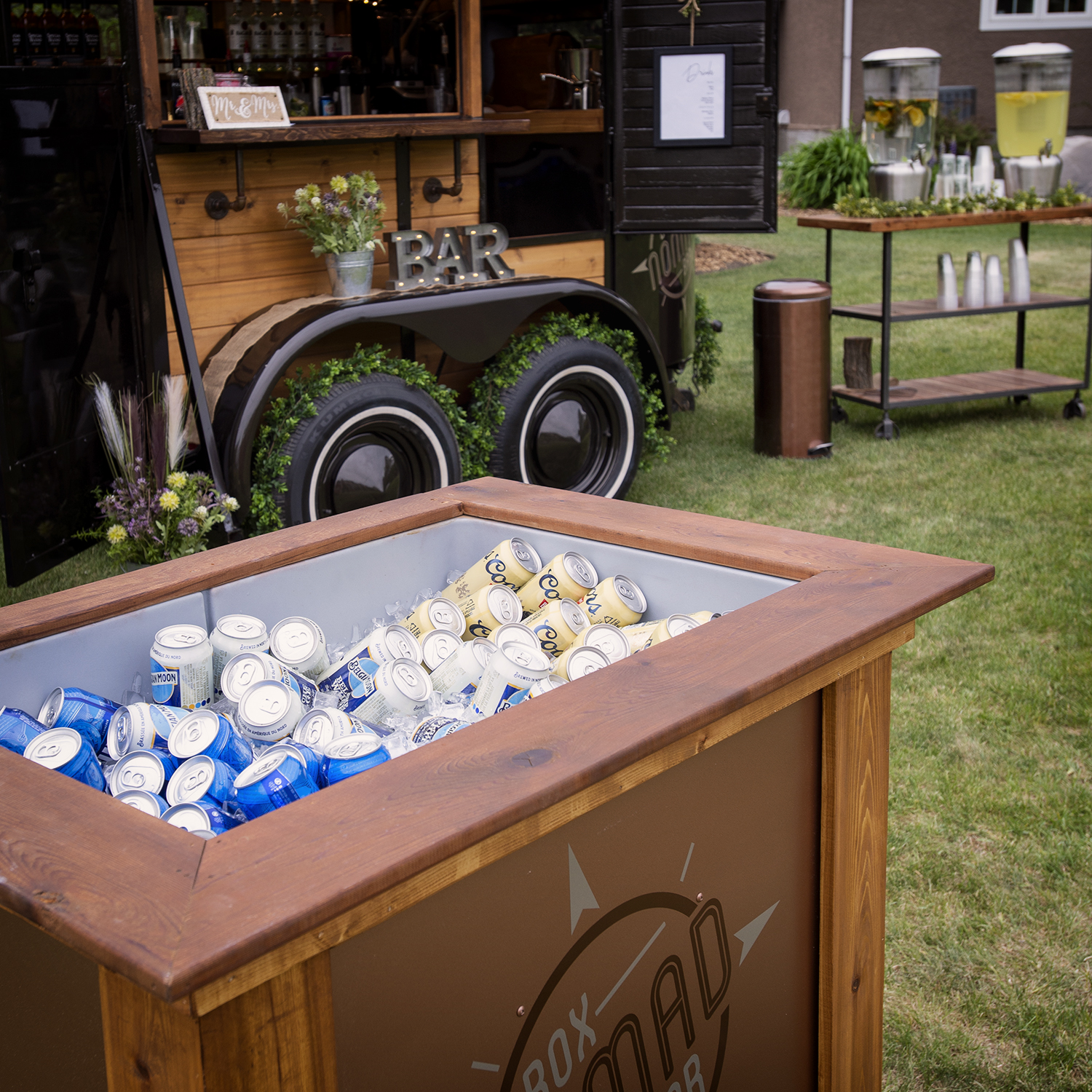 We all love the outdoor bar vibe at a wedding, but what happens when you want the option to serve your guests indoors as well? Flex Bar is a portable, multi-functional bar on wheels that can be used indoors and outdoors. It’s lightweight and compact design makes it easy to transport and set up at your event location. Do you need a portable indoor bartending service for your event or company party? Flex Bar can be used as a grab and go cooler with its 300+ can capacity or transform easily into a functional indoor bar with custom ledge for serving!